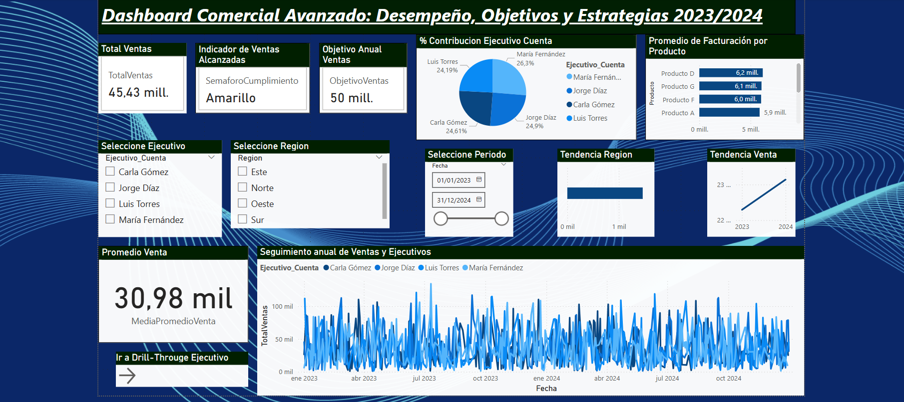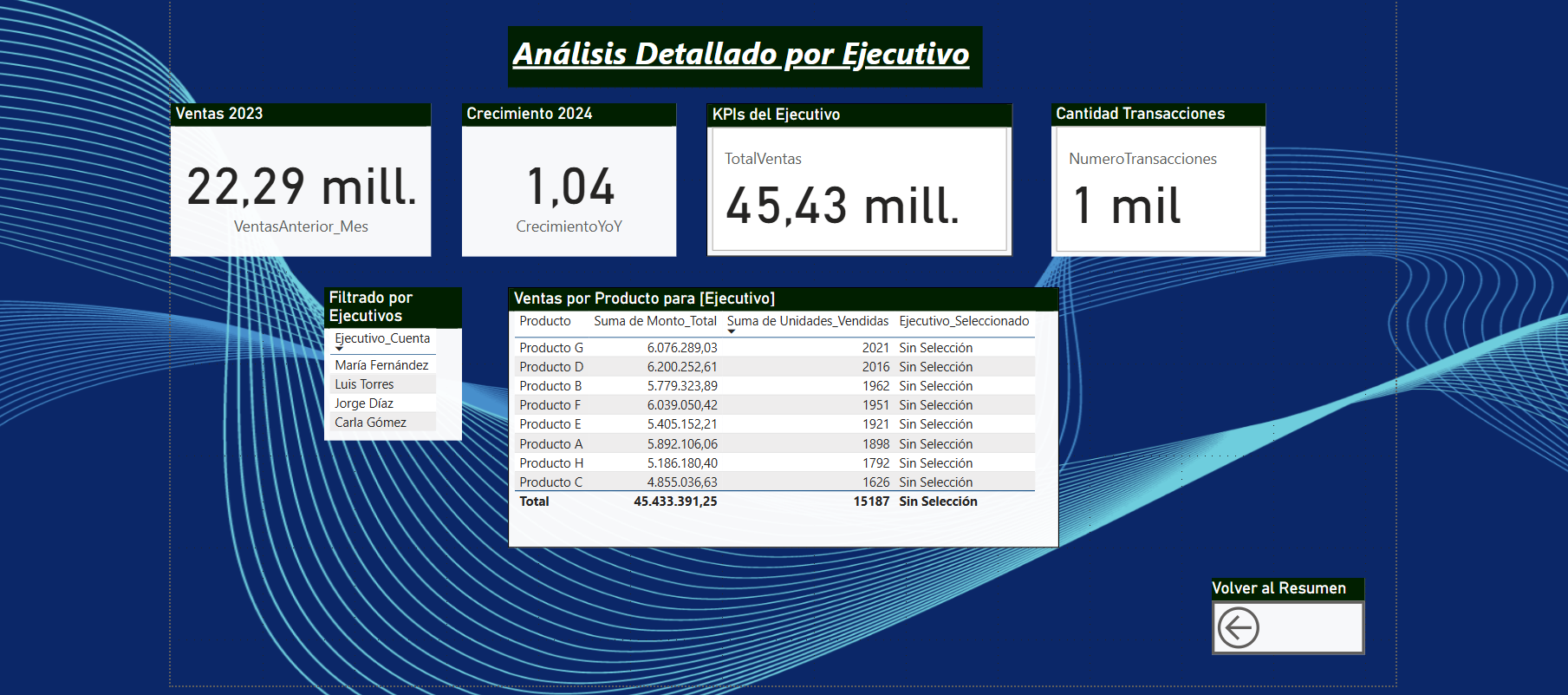 Gracias al análisis comparativo (YoY, MoM) y a la vista detallada por ejecutivo, el informe permite detectar oportunidades, ajustar estrategias y optimizar recursos. Cada visual cuenta parte de la historia comercial de la organización.